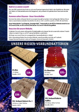 Jahr bieten wir Feuerwerksfreunden die Gelegenheit, sich preiswert mit spektakulärem Feuerwerk einzude-